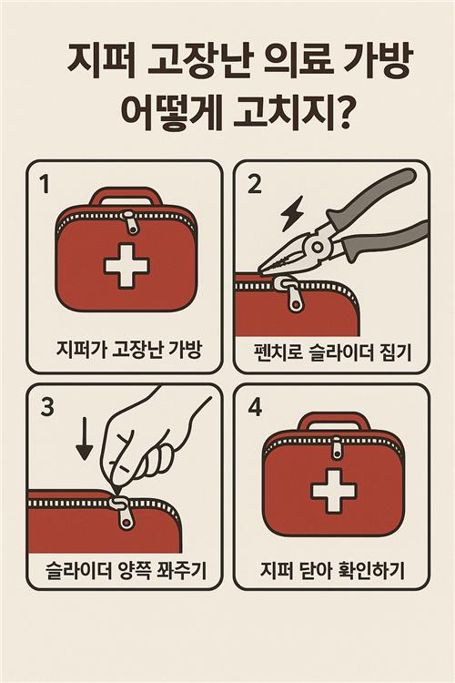 의료가방, 지퍼수리, 가방수선, 지퍼고장, 슬라이더교체, 응급가방수리, 수선팁, 가방고장, 지퍼정비, DIY수선
