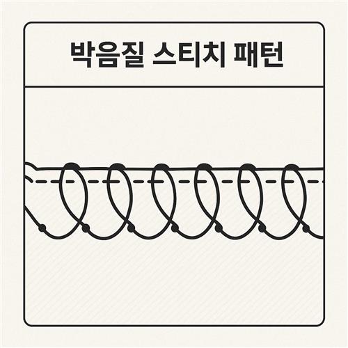 - 일정한 장력: 살짝 휘어 보거나 눌러 보았을 때 스티치가 한쪽으로만 당겨지지 않고 균일한 긴장감을 유지하는지 확인합니다.