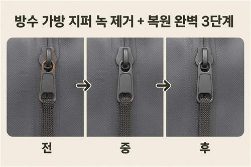 녹 제거 후에는 지퍼를 여러 번 여닫으며 작동 상태를 꼭 확인하세요.