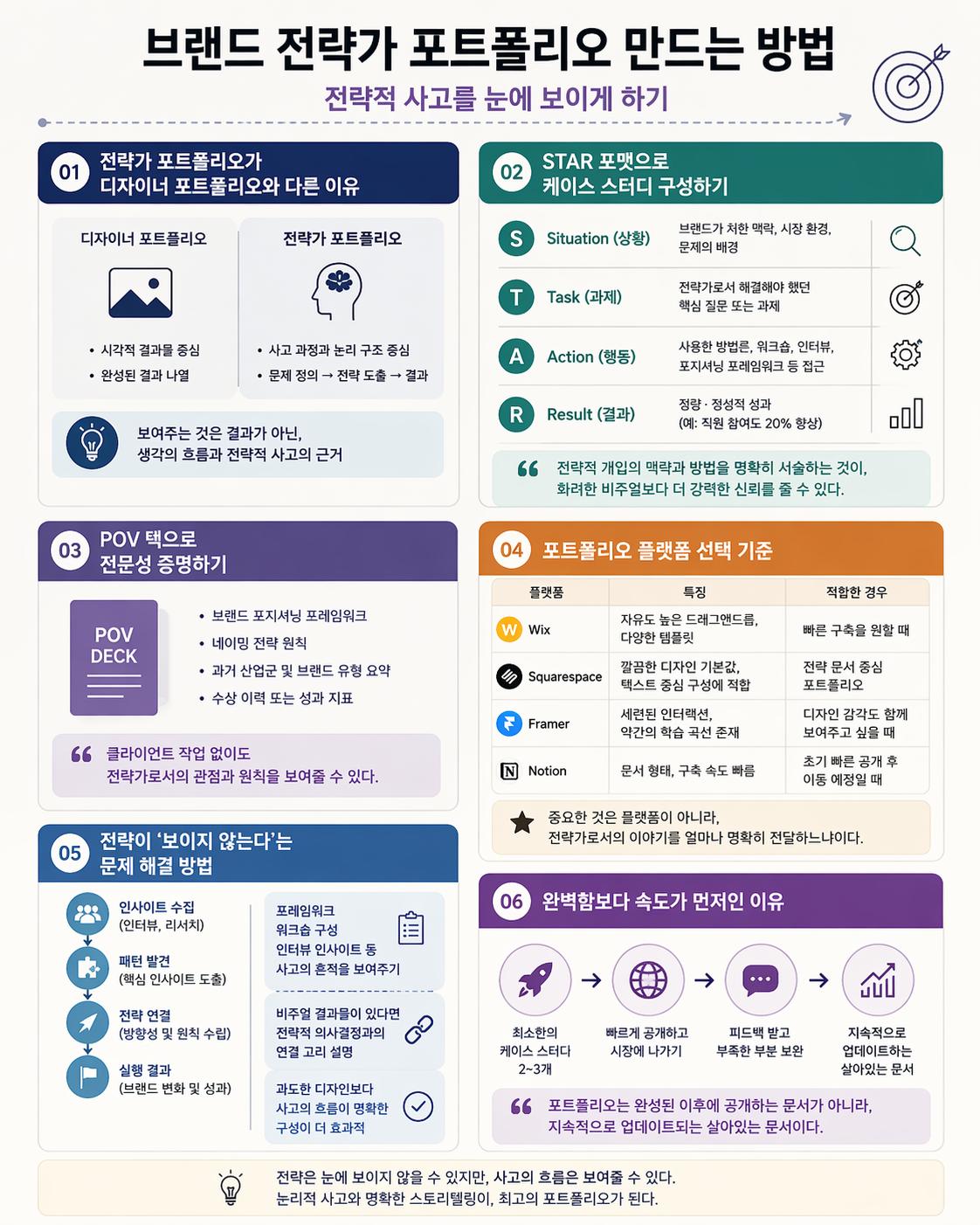 어떤 플랫폼을 선택하든, 포트폴리오의 핵심은 플랫폼의 기능이 아니라 전략가로서의 이야기를 얼마나 명확하게 전달하느냐에 있다.