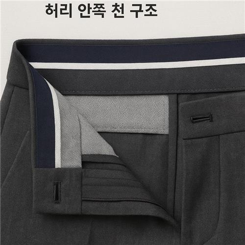 - 하루 종일 셔츠를 넣어 입는 직장인셔츠가 허리 위로 자꾸 빠져 나온다면, 허리 안단에 미끄럼 방지 기능이 있는지 확인해 보세요. 안단 상단에 실리콘 처리가 되어 있거나, 조직이 거친 테이프가 덧대어진 슬랙스는 셔츠를 안정적으로 잡아 줍니다.