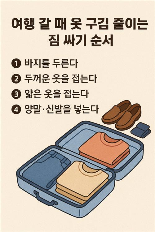 작은 습관 하나, 올바른 순서 하나가 옷 구김을 줄이는 큰 열쇠가 될 수 있답니다. 마음껏 여행을 즐기고, 늘 깔끔한 스타일로 추억을 남겨보세요!