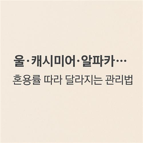 포근한 겨울 옷장에서 빠질 수 없는 울, 캐시미어, 알파카 소재! 하지만 세탁기 한 번 잘못 돌렸다가 망가진 경험, 한 번쯤 있으셨죠? 소재마다 섬세한 성질이 다르고, 혼용률에 따라 관리법도 확 달라진답니다. 이번 포스팅에서는 울·캐시미어·알파카 섬유의 혼용률에 따라 달라지는 관리법을 하나씩 꼼꼼히 알려드릴게요. 우리 옷 오래오래 예쁘게 입으려면 꼭 알고 가야겠죠?