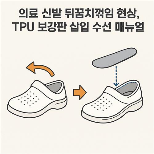의료신발, 뒤꿈치보강, TPU보강판, 신발수선, 꺾임현상, 자가수선, 열성형, 신발관리, 재활신발, 보행교정