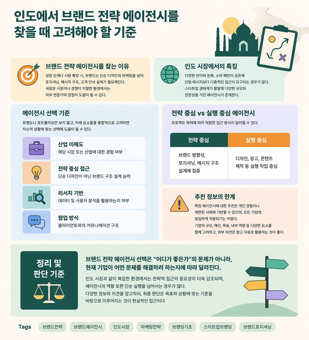 브랜드 전략 에이전시 선택은 단순히 “어디가 좋은가”의 문제가 아니라, 현재 기업이 어떤 문제를 해결하려 하는지에 따라 달라질 수 있다.