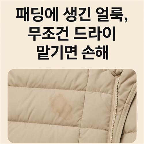 드라이클리닝이 꼭 필요한 경우도 물론 있지만, 모든 얼룩을 맡기는 건 지갑과 패딩 모두에게 손해일 수 있어요.