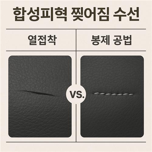 합성피혁, 가죽 수선, 열접착 수선, 봉제 수선, 인조가죽 복구, DIY 수선, 찢어진 가방, 소파 수리, 가죽 찢어짐, 홈리페어